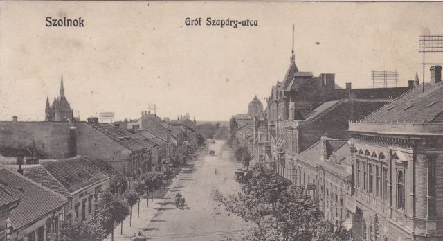 A blogSzolnok Album rovatának közel négyszáz régi fotója között a leggyakrabban talán a Szapáry utca tűnik fel. Talán csak részben azért, mert az egykori Molnár utcából a megyeszékhellyé váló város korzója kezdett lenni a XIX. század végén. Az okok között szerintem sokkal fajsúlyosabb, hogy az 1800-as évek végén itt telepedett le Szigeti Henrik, akinek aztán a következő bő negyedszázadban legalább négy különböző helyen volt műterme a Szapáry utca akkori elejének a környékén. Szigeti mester pedig előszeretettel fotografálta az éppen aktuális műhelyeit kívülről, illetve az egyetlen második emeleti műterme ablakából Szolnok központját, azaz a Szapáry utcát és a Kossuth térre vivő Gorova utca végét.