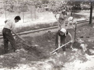 Az azonban bizonyos, hogy mind a három fotó társadalmi munkásokat ábrázol. Azaz – a fiatalabbak kedvéért – olyan embereket, aki önként vagy kevésbé önként, ingyenes közösségi munkára vállalkoztak a Tiszaliget kiépítése érdekében. Érdemes megnézni a ruházatot – se nem szabadidő-, se nem munkaruhák -, a serénykedőkre bízott feladatok bonyolultságát és szervezettségét. Szerintem látszik, hogy a képeken látható embereknek nem ez volt a mindennapi elfoglaltsága. Ami persze nem zárja ki, hogy a mából nézve is tiszteletre méltó munkát végeztek. Sőt, nyugodtan leszögezhetjük: a Tiszaliget ma nem lenne az, ami, ha a hatvanas-hetvenes években a város dolgozói nem adták volna hozzá a kétkezi munkájukat. Ismert, hogy a Liget Tisza felőli oldalán elsősorban azok a nagyvállalatok építhettek üdülőt, amelyek dolgozói a leginkább kivették részüket a társadalmi munkából. (Az egykori üdülők sorsát most ne feszegessük!)