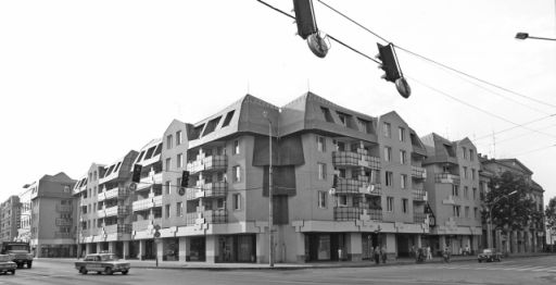 Tény, hogy a mai Szapáry felőli oldalon be vannak deszkázva a kirakatok, ugyanakkor az emeleti ablakok mindegyikén függöny van, azaz laktak az épületben. Sőt! Az előző fotó és e között alapvető különbség, hogy az emeleten újabb gázkonvektor szellőzők jelentek meg, azaz a lakók hatósági engedély birtokában fejlesztették az otthonaikat. Számomra tehát ez a kép egy újabb bizonyíték arra, hogy a Nerfeld-palota megmenthető lett volna, hiszen fél évtizeddel a végzetesnek beállított baleset után is nagyrészt használható volt. Azzal együtt, hogy egy alapos felújítás már a hetvenes évek közepén ráfért volna a házra.