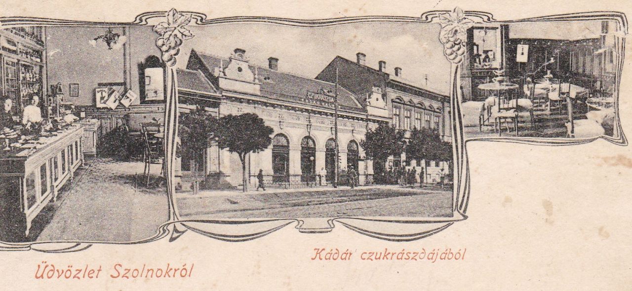 A szolnoki Szapáry utcán álló Kádár cukrászda külsejéről és belsejéről 1904 előtt készített fotókat a közelben műtermet működtető Szigeti Henrik udvari fényképész. Azt sajnos nem tudom, hogy Kádár és Szigeti között mi volt a megállapodás, de a felvételek minimum két kiadást megértek.