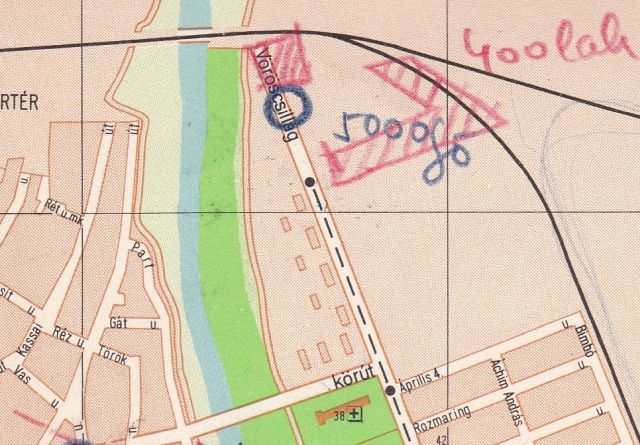 Nekem az a gyanúm, hogy ez a közterület már az 1950-es évek végén is létezett, csak akkor még a Vöröscsillag út részének tekintették. Legalábbis erre utal Szolnok korabeli térképe, amelyen úgy tűnik, maguk a háztömbök is be vannak jelölve. Persze nem zárható ki, hogy a rajzon még csak a tervezett házak szerepelnek, tudván, hogy legközelebb egy évtized múlva készül új várostérkép. Az utca házainak stílusát nézegetve egyébként nem lenne meglepő, ha már az ötvenes években elkészültek volna, hiszen erős rokonságot mutatnak a Boldog Sándor István körút „sztálin barokk” épületeivel. Sőt, az első tömb egy kifejezetten szép példánya a korabeli lakóházaknak.