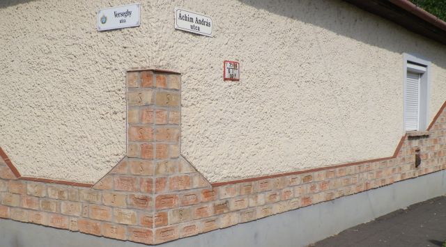És, ha már építészet és érdekesség. Az utca elején feltétlenül érdemes egy kicsit elidőzni, hiszen az ottani ház fala egy mini téglagyűjtemény. Gyönyörű, régi téglák díszítik kívülről a házat, többek között a néhai Sípos téglagyár termékei. Vannak városok, ahol a helyi és környékbeli gyárak klasszikus méretű téglái külön kiállítást kapnak, mi – jelenleg – örüljünk ennek. (Minden tiszteletem a tulajdonosé.)