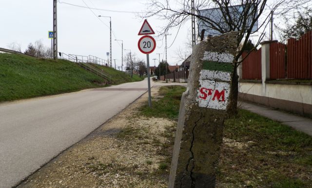 A Kocsoros utcát – bár az utca megjelölés nélkül jobban szájra áll – sok kerékpáros is érinti, hiszen ez a Szolnokról Martfű irányába haladó bringaút egy, bár nem kiépített szakasza. Ezen kívül, aki figyelmesen sétál erre, észreveheti, hogy az utcában szinte érthetetlenül sok közműkövön és egyéb betonoszlop-maradékon két turistajel is feltűnik. Az egyik a fehér négyzetben lévő zöld csík, ami helyi utat jelöl, és ha jól sejtem, ebben az esetben a belvárosból a Szanda határában lévő Beke Pál halmához visz. A másik, a fehér négyzetben lévő piros St M jelzés a 2015 óta létező Alföldi Szent Márton Zarándokutat jelöli, ami a megye két Szent Márton püspök tiszteletére felszentelt templomát, azaz Kunszentmártont és Tiszapüspökit köti össze Szolnok, azon belül Szandaszőlős és az idén 55 éve hivatalosan is nevet kapott Kocsoros út érintésével.