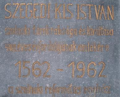 Van még egy érdekes szolnoki kapcsolata ennek a saját házszámok nélküli köz névadójának. A Szolnoki református egyházközség honlapján bukkantam egy kis emléktáblára, amit Szegedi Kis István török rabságból való szabadulásának 400. évfordulójára helyezett el az egyház. Sajnos a táblát nem találtam meg, pedig rettentő érdekes, hogy hat évvel az 56-os forradalom után, amikor még a nagy amnesztiát sem hirdették ki, egy ilyen emlékhely jöhetett létre Szolnokon.