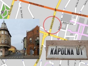 Gyanítom, a Baross és Ady Endre utcákat összekötő, 1991 óta ismét a Kápolna nevet viselő közterületet már azt megelőzően is ezen a néven emlegethették, hogy 1863-ban hivatalosan így került be a helyi utcajegyzékbe. Leginkább azért, mert a hivatalos utcaelnevezések előtt az emberek a közterület irányára – pl. Pesti út -, funkciójára – pl. Piac tér – vagy éppen egy jellegzetes épületére utalva neveztek meg helyeket. Márpedig itt 1733 – más források szerint 1749 – óta kápolnához visz az út.