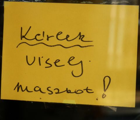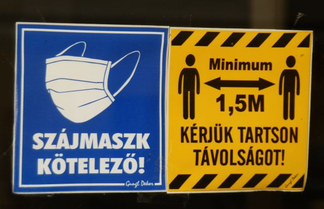 A végére hagytam az eddigi kedvencem. Egy régi és közkedvelt belvárosi presszó ablakában található a mellékelt kézzel írt, de a több szín használata miatt egyértelműen igényes és átgondolt felirat. Nem jön ez semmiféle törvényekkel, meg kötelező és tilos kijelentésekkel vagy felszólításokkal. Kvázi saját magatartási szabályokat fogalmaz meg, amiben benne van minden, amit egy ilyen helyen meg lehet tenni a megelőzés érdekében. Még az is, hogy a szájat és az orrot eltakaró maszk használata természetesen fogyasztás közben nem kötelező. Bár tegyük hozzá, nagyon szomorúak lehetnek azok a kiskocsmák, ahol a törzsvendégek eltakart szájjal ülnek egymás mellett, és netán így próbálnak az egyébként is csökkenő artikuláció mellett beszélgetni.