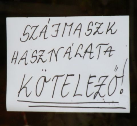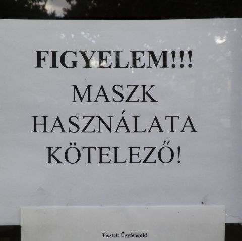 Na, de vissza a feliratok tartalmához! Vannak ugyanis olyanok, amelyek nem csupán a maszkviselésre hívják fel a belépők figyelmét, de némi magyarázattal is szolgálnak. Egy divatárubolt ajtaján például konkrétan utalnak arra, hogy kormányrendelet miatt szükséges az arc eltakarása. Egy újságosnál konkrét dátum és a védekezés további módozatai is szerepelnek a feliraton. A fővárosban láttam olyan feliratokat, amelyek közül az egyik a főpolgármester, a másik meg a miniszterelnök számlájára írta – egyáltalán nem dicsérőleg – a kötelező szájmaszkot. Nagyon keresem, de vírustagadó ugyanakkor maszkviselésre felszólító feliratot még nem találtam, de gyanítom, hogy ami késik, nem múlik.