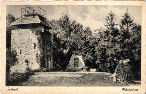Az e képeslap bal szélén álló toronynak annyi köz van az egykori várhoz, hogy a leírások szerint, az 1902-ben megnyílt Szolnoki Művésztelep alkotói, az erőd megmaradt köveiből építették 1905-ben. Kaposvári Gyula közlése szerint, a torony alapkövében elhelyezett irat arról tanúskodik, hogy a terveket Frecskai András grafikus készítette, míg az építészi feladatokat Pongrátz Károly tájképfestő látta el. A leírásból az is kiderül, hogy a toronynak nemcsak pincéje, és amint a mellékelt fotón jól kivehető, tetején kilátója volt, hanem belsejében hűvös borozó is.