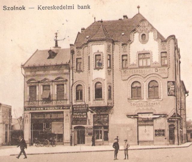 Az egyik a lassan hat évtizeddel ezelőtt elbontott Kereskedelmi Bank szecessziós épülete, ami 1907-től ott állt, ahol ma a Boldog Sándor István út kezdődik, a Baross és a Szapáry utcák kereszteződésénél. A főhomlokzatán kettő-, az L alakú alaprajza hosszabbik szárán egyemeletes épület sokáig határozta meg a város korzóját, helytörténeti jelentőségét pedig az adja, hogy második emeleti, sarki helyiségeiben egy ideig Szigeti Henrik – „Szolnok képes krónikásának” – fotóműterme működött. Városi legenda, hogy a fennmaradt fényképek tanúsága szerint tényleg gyönyörű épületnek a „fehérház” miatt kellett pusztulnia. A valóság, hogy már az építésekor is tudták, útjában lesz a szolnoki közlekedésnek, ezért csak 30 évre kapott fennmaradási engedélyt, amit majdnem ugyanennyivel toldott meg a történelem.