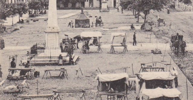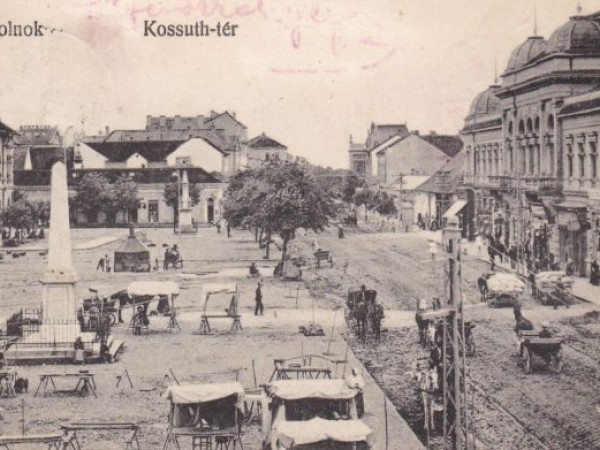 Valamikor 1906-ban vagy 1907-ben lehetett az a piaci nap, aminek a végén, a Steiner-házból valaki megörökítette Szolnok főterét. A városháza előtt zsákokkal megrakott szekerek, a mai könyvtár oldalában szétrakott kosarak. De már macskaköves az út, van közvilágítás és hirdetőoszlop is.