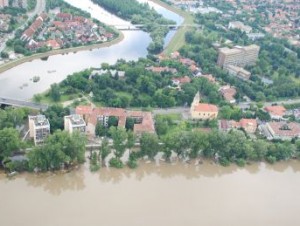varteruleteAz első kérdésre sajnos röviden csak annyit mondhatunk, hogy Szolnok régészeti örökségéből a felszínen semmi nyom nem maradt, minden a föld és a víz alá került. Pusztulásuk oka egyrészt az, hogy a település meglehetősen viharos történelmet tudhat maga mögött, több alkalommal porig égett, továbbá a középkori és a kora újkori vár, valamint város területét új épületek foglalták el. A természet erői sem voltak kegyesek: a vár utolsó maradványait az 1879-es nagy tiszai árvíz mosta el. (A képen a vár területe a legutóbbi árvíz alkalmával készüklt fotón.)