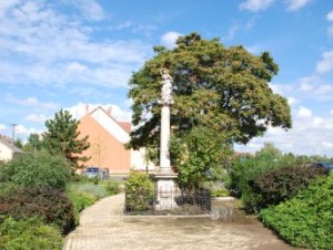 11-kepkr-3A kora újkori időszak legrégebbi fennmaradt, lenyűgöző szépségű emléke a jelenlegi Dr. Balogh Kálmán utca és Pólya Tibor utca találkozásánál található Immaculata/Szeplőtelen Fogantatás-szobor. A barokk szobrászművészet e jellegzetes szolnoki alkotása 1750 körül készült és műemléki védelmet élvez. A kovácsoltvas kerítéssel övezett területen, hasáb alakú talapzat, homloksíkján kartusban címerpajzs, a város pelikános címerével. A talapzatra helyezték azt a karcsú, kannelúra nélküli oszlopot, melynek tetején a fölfelé tekintő Szűz Mária áll, feje körül csillagkoszorúval, lába alatt a földgolyóval és a kígyóval.