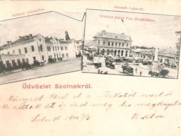 Az biztos, hogy 1900. január 6-án, amikor ezt az „Üdvözlet Szolnokról.” feliratú lapot postára adta egy bizonyos Viktor, még alig néhány éves divatról volt szó. Mert mint tudjuk, a képeslap 1870-ben született meg Németországban. Az első magyarországi – máig ismeretlen kiadójú – lapokat két évtizeddel később készítették. Ám a hivatalos, állami képeslap kiadásra csak a Millennium évében, 1896-ban került sor. Majd ezt követően készültek sorra a városokat is ábrázoló lapok, ami a képeslapküldés tömeges elterjedéséhez vezetett. Tehát Szigeti Henrik udvari fényképész maximum három évvel később készíthette el a mellékelt fotókat, és azokból legalább kétféle képeslapot, hiszen 1900 első napjaiban Viktor 4 fillérért már postázott is egyet Aradra, Berecz Paulinának.