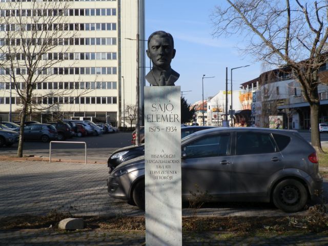 Sajó Elemérről (1875-1934) eddig nem tudtam többet, mint amit szolnoki mellszobrának a talapzatára véstek: „A tiszavölgyi vízgazdálkodás távlati tervezésének úttörője”. Régóta izgatott a portréja, így kicsit utána néztem, és ma már tudom, hogy neki köszönhetjük például a közeli Békésszentandrás duzzasztóműjét, a csepeli szabadkikötőt vagy éppen a soroksári Duna-ág rendezését, rajta a nagybátyjáról – Kvassay Jenőről – elnevezett zsilipet. A Műegyetemen szerzett diplomát 1897-ben, majd részt vett az óbecsei hajózsilip építésében és a Béga-csatorna munkálataiban, nyugdíjazása előtt, a harmincas években pedig kidolgozta a magyar vízügyi politika több évtizedes programját. Ez minden bizonnyal rendszereken és rendszerváltásokon át is használható volt, így Sajó Elemér munkássága és emléke a második világháború után se volt sutba dobható.