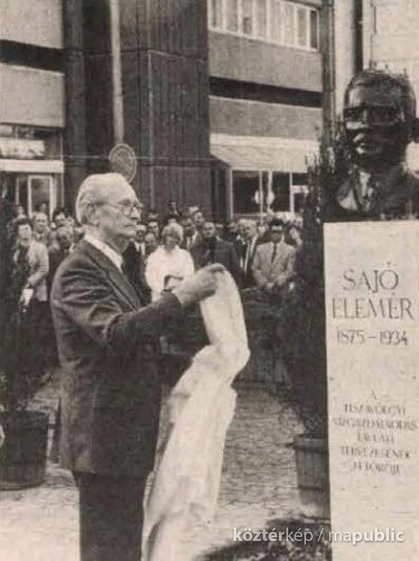 Mészáros Mihály Sajó Elemér szobrát tehát 1988. október 11-én délelőtt avatta fel Bencsik Béla, a Magyar Hidrológiai Társaság akkori elnöke. A szobor helyének kijelölésében minden bizonnyal közrejátszott a vízügyi székház közelsége, ám maga az alkotás nem pontosan ott állt, ahol ma találjuk. Oda csak 2001-ben helyezték át a toronyház előtti parkoló átalakítása miatt, amikor a posztamens alatti gúlát is megépítették. Ez talán összefügghetett azzal, hogy 1997. szeptember 8-án reggelre feldöntötték az alkotást, így szükségesnek láthatták az új helyen az állóképességének a megerősítését. Ám az áthelyezése után sem állhatott nyugodtan a szobor. A megyei napilap 2007-es írása szerint egyszer színesfém-tolvajok is szemet vetettek rá. Bár nem zárható ki, hogy csak a 2004-es felújítás miatti eltűnését értették később félre.
