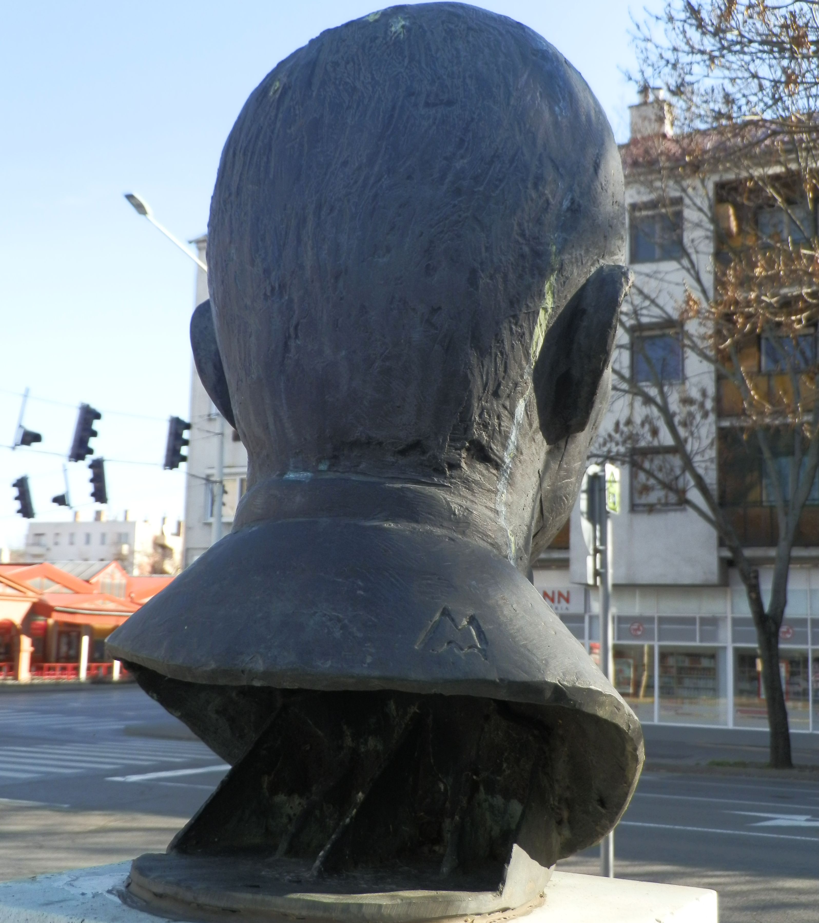 A Magyar Képzőművészeti Főiskolán Mikus Sándor, Pátzay Pál és Kisfaludy Strobl Zsigmond tanítványaként induló Mészáros Mihálynak (1930-2008) közel félszáz köztéri alkotását tartja nyilván a nagyszerű Köztérkép.hu. Ezeket végignézve láthatjuk, hogy az ötvenes évek végén pályára lépő művész is számtalan felszabadulási és munkásmozgalmi jellegű szobrot készített, ugyanakkor portrék sorozata is köthető hozzá. Legismertebb alkotása talán a 2001-ben, az Ópusztaszeri Nemzeti Történelmi Emlékparkban felállított Anonymus-szobor. A szolnoki Sajó Elemér portré elkészítésére történő felkérésének körülményei előttem ismeretlenek, de talán közrejátszhatott ebben az is, hogy a nyolcvanas évek végén a Magyar Képzőművészek és Iparművészek Szövetségének külügyi referense, egyben a Magyar Iparművészeti Főiskola plasztikai tanszékének a tanára is volt, azaz egy elismert és elfogadott alkotóról lehetett szó.