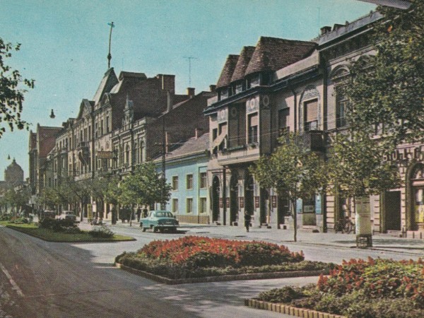 Mondhatnánk, hogy az elmúlt hatvan évben alig változott valamit az 1990-től ismét Szapáry, 1949-től Ságvári út, 1960-tól körút páros oldala. Mondhatnánk, de nem mondjuk, mert a mából nézve azért elég meglepők például az úttestet kettéosztó virágágyások, amiket a forgalom biztos, hogy nem indokolt. Ezt a képet ugyanis Horváth úr, a bal oldalon látható árnyékok alapján kora félelőtt készítette, és mindössze két parkoló autó, meg a távolban talán egy lovaskocsi látható rajta. Még, ha hétvégi is a felvétel, akkor is elég gyér a forgalom, ami persze nem csoda, hiszen 1957-ig magántulajdonban nem is nagyon lehetett autó, miközben a vállalatok és az állami szervek is csak egy-két személyautóval rendelkezhettek akkoriban. Szóval az a világoskék vagy esetleg zöld M21-es Volga, amit 1957-ben kezdtek gyártani a Szovjetunióban még 1963-ban is különlegességnek számíthatott a szolnoki Ságvári körúton.