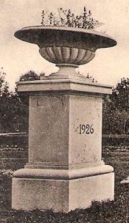 A helymeghatározásomat két dolog bizonytalaníthatná el, ha nem számolnánk a fotó készítésének időpontjával. Az egyik, hogy ilyen 1926-os talapzatú kőtál bő nyolcvan éve nem állhat ezen a helyen, hiszen itt Borbereki Kovács Zoltán 1934-ben felavatott Verseghy-mellszobrát találjuk. Illetve látszódnia kellene legalább az Evangélikus templom tornyának. Ami azonban először talán 1931-ben tűnhetett volna fel, hiszen csak egy évvel később adták át. Tehát, ha jó a helymeghatározásom, akkor azt is kijelenthetjük, hogy a képeslaphoz felhasznált fotó valamikor 1926 és 1931 között készülhetett a mai Verseghy-parkban.