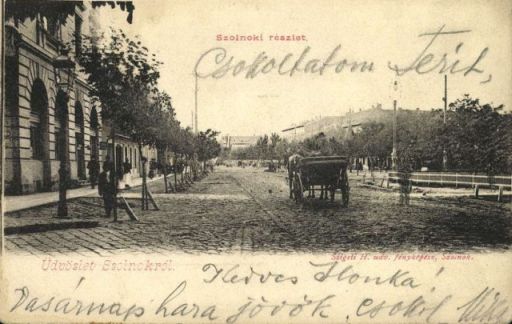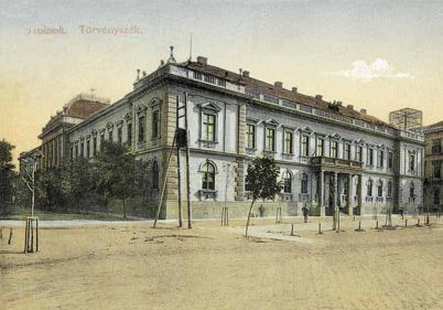 Az Arcanum.hu oldalon Szolnokról is nagyon sok régi képeslap érhető el. Ezek között böngészve találtam rá ismét arra a három évvel ezelőtti témámra, miszerint a bíróság épületének főhomlokzatát eredetileg nem a megyeháza felé tervezték, hanem az akkori Werbőczy utcára. Ezt akkor az épületnek azzal a hangsúlyos középső részével magyaráztam, ami jelenleg alig vehető észre a szűk Dózsa György utcából. Ma is egyértelműnek gondolom, hogy a bíróság főhomlokzata az, csak éppen a felépítése után megváltozott a környék beépítési terve. Mert azt nem hinném, hogy a megyeszékhellyé váló Szolnok ezen fontos épületét egy mellékutcába akarták volna eldugni. Illetve, ha a tervezés időszakában is sejtették volna, hogy a Dózsa György út túloldalán lévő telkek beépülnek, akkor biztos, hogy a mai Kossuth Lajos utcára kerülnek a fő hangsúlyok.