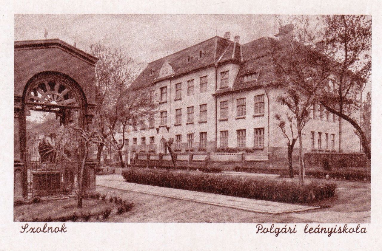 A mai Templom utcában álló általános iskola épületét az első világháború előtt Rerrich Béla műépítész tervezte az izraelita hitközség épülete és a Belvárosi nagytemplom közötti telekre. Pontosabban a Templom utca és az akkoriban talán Laktanya utcának nevezett, később Szigonyra átkeresztelt derékszögű közterület által határolt helyre. Annak a promenádos parknak a maradékára, ahol a 19. században valószínűleg a Szomorú Krisztus szobrunk is megtalálható volt. Mindennek csak azért van jelentősége, mert a kifejezetten leányok részére készült iskolaépületről már 1915-ben jelentetett meg képeslapot a szolnoki Gettler József hírlapelőfizetési irodája, hogy aztán a második világháborúig viszonylag sok anziksz lásson napvilágot a város egyik legimpozánsabb középületéről. És csakis arról. Legfeljebb a Zsinagóga lógott még bele a felvételekbe, a Szomorú Krisztus soha.