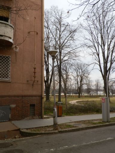 Azt hiszem, hogy nem a fentiek a város legrégebbi, ma is a helyükön lévő, épületre szerelt zászlótartói. Ha tippelnem kellene, akkor inkább a Hatvanas épületének – az egykori Cukorgyári bérház – sarkán lévőre tennék. Csodálatos az a kétemeletnyi vasrúd, amivel kapcsolatban persze el nem tudom képzelni, hogy miként lehetett rá zászlót tenni. Egyébként nem ez az egyetlen ilyen zászlórúd a városban. A Lengyel légió utca „végén”, a park melletti – szerintem nagyon szép, talán bauhaus stílusú – lakóház oldalán is találunk egy kicsit kisebb, de stílusában nagyon hasonló zászlótartót.