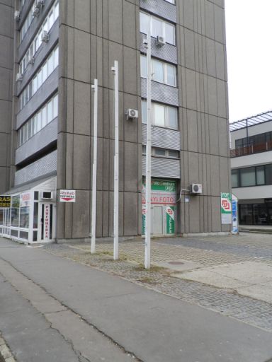 Vannak persze olyan zászlótartók, amelyeket vagy a történelem sodort el, vagy a város átépítése. Emblematikus három zászlórúd voltak a Kossuth tér közepén, a Kovács Ferenc Munkásmozgalmi emlékműve mellett, az ugyanazon a talapzaton állók. A hatvanas évek elején kerültek oda, és a szoborral együtt 1990 áprilisában bontották el őket, hogy aztán bő másfél évtizeden keresztül öt, fehér rudacska álljon a helyükön. A három régi, fekete oszlop érdekessége, hogy valamilyen címer is volt a végükön.