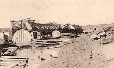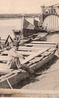 Nézzék meg azt a pincsi kalapos, bajszos embert a kép előterében! Egyik lábát felhúzva, másikat lógatva ül a méretes ladik pallóján, és a semmibe révedve bámulja a partfalat. Mozdulatlanságában ott a reménykedő várakozás. Körülötte szinte áll a levegő. Nem tudom, ki lehetett ő: rakodó, hajó tulajdonos, kereskedő, vagy lehetőségre váró munkanélküli. Sovány arcán azonban ott egy egész élet, ami a folyóhoz köthette.